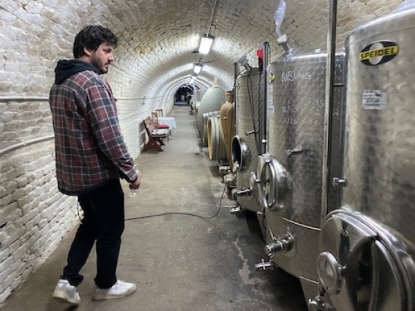 About an hour West of the Hungarian border and 2 hours south of Vienna you’ll find 9 hectares sloping down between fruit orchards planted to Adelfränkisch, Affenthaler, Augster Gelber, Auxerrois, Bettlertraube, Blaue Frankentraube, Blauelbling, Blauer Arbst, Blauer Elbling, Blauer Hängling, Blauer Sylvaner, Blauer Wildbacher, Blaukölner, Bouquet-Silvaner, Bourguignon, Elbling, Frühburgunder, Frühe Magyartraube, Furmint, Gelber Langstieler, Gelber Traminer, Gewürztraminer, Goldriesling, Grauburgunder, Grüner Sylvaner, Grüner Veltliner, Grünfränkisch, Hartblau, Heunisch Rotgestreift, Heunisch Schwarz, Honigler, Jubiläumsrebe, Kleinberger Kerner, Kleinedel, Kleiner Burgunder, Morillion, Muskat-Gutedel, Muskateller, Neuburger, Ortlieber, Peloursin, Piros Furmint, Riesling, Roter Elbling, Roter Gutedel, Roter Hänisch/Pamid, Roter Heunisch, Roter Traminer, Roter Veltliner, Rotgipfler, Sauvignon Blanc, Scheurebe, Schlehentrauben, Schwarzurban, Süßschwarz, Tauberschwarz, Trollinger, Weissburgunder, Weiße Orleans, Weisser Gutedel, Weißer Heunisch, Weißer Kadarka, Weißer Lagler, Weißer Räuschling, Weißer Tokayer, Weißer Veltliner, Welschriesling, and Zierfandler. Continue > >
