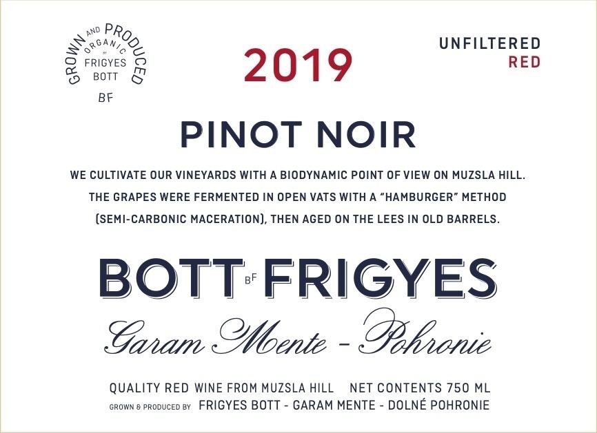 This is the premium estate white blend. Muzsla is the name of the hill where the vineyards look down onto the Danube and 2019 is only the second vintage. It’s only the second vintage because the family needed time to evolve from the zero skin contact filtered wines that defined their earlier years and the unfiltered and more macerated wines they’ve been making in recent years. Early on Frigyes considered the more reductive lineup as “terroir” driven wines and his more macerated and oxidative lineup as more of the “soul” of the property. The Muzsla bridges this divide. Like the vast majority of their wines, this is made using the Hamburger method: three layers of foot trodden, whole cluster and whole berry fermented in open vats. The Muzsla spent 6 days in this hamburger method followed by 18 months in neutral oak barrels on the lees. Only racked once before bottling, then bottled unfiltered with a small (25ppm) addition of SO2. There’s weight, texture and freshness from the whole clusters, more chiseled acid driven elements from the whole berries, and given the aging time, it all comes together seamlessly. Some sips feel like a skin contact wine, some like stainless steel reductive winemaking, but the color, texture and aromatics give this wine a firm Goldilocks status in the Bott Frigyes lineup.