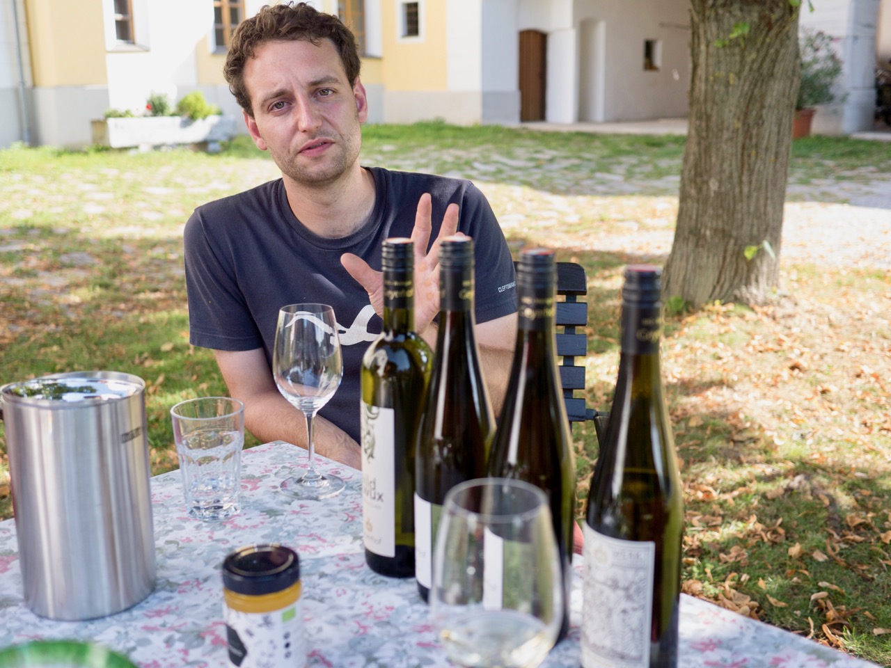 Loess and alluvial soil east of the winery (Gaisberg and Rosensteig), primary rock to the northwest (Steinleithn and Kirchensteig), and loamy soil to the south (Hoher Rain). 60% of the vineyard area is planted to Grüner Veltliner, 20% to Riesling, and the balance to Zweigelt, Weissburgunder, Chardonnay, and Gelber Muskateller. Recent clonal selections came from the famous Knoll vineyards. Asked if biodynamic viticulture has ever seemed to be a next step, Ilse says she doesn’t believe it to be necessary—bio is not a “step up” from organic, just a different approach.